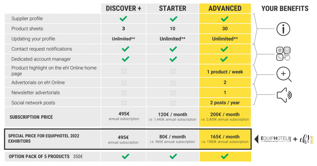 DISCOVER EH! ONLINE / SIGNIFICANT BENEFIT OF HIGH LEVEL DIGITAL PROMOTION OF YOUR BRAND TO A TARGETED COMMUNITY OF 200.000 FRENCH AND INTERNATIONAL HOSPITALITY BUSINESS PROFESSIONALS.