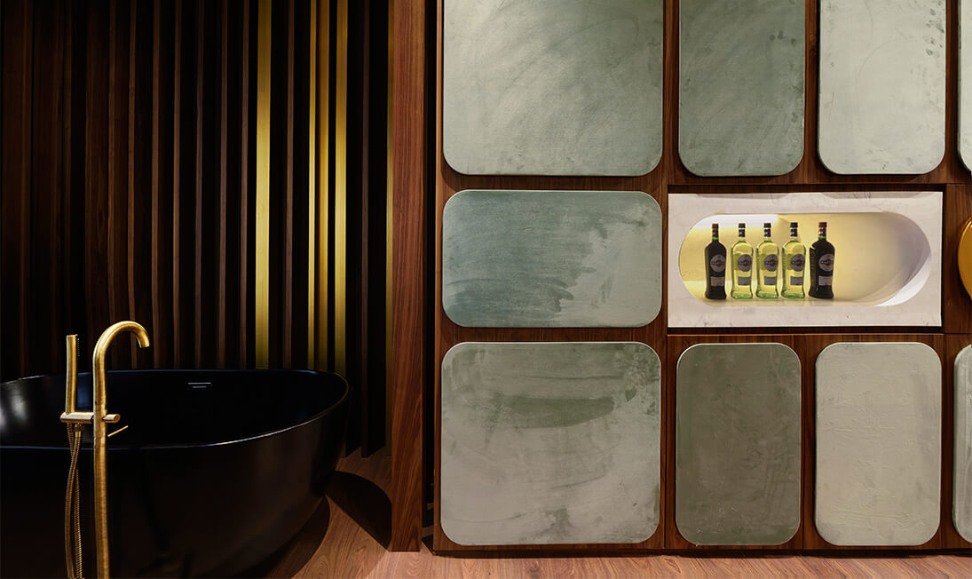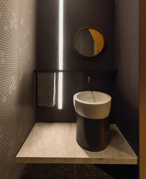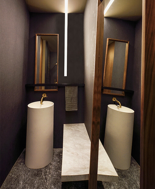 With the use of materials such as velvet fabrics, marble, walnut wood, bronze, the accompanying music, video projection and special air of freshness, the architectural practice attempted to stimulate all visitors’ senses, thus creating a holistic travel experience where the hotel is transformed into a pole of diverse functions and feelings.