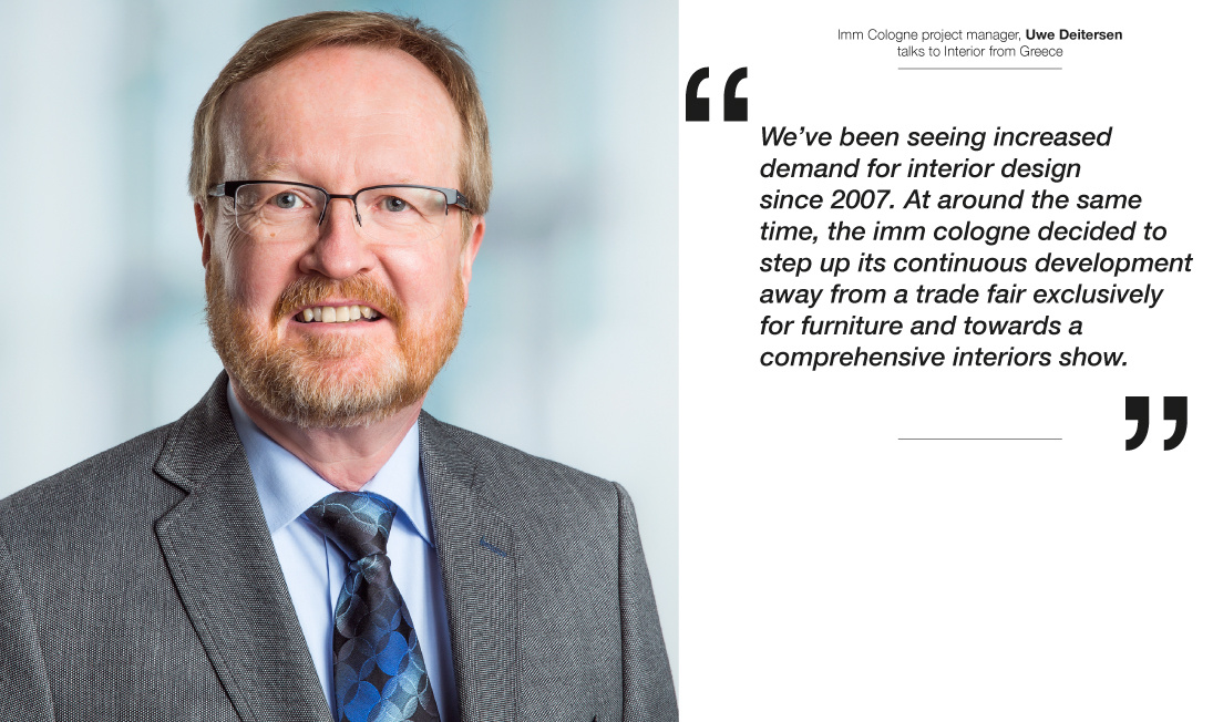 Just before the opening of imm Cologne 2018 (15th-21th January), where greek participation will be again dynamic, project manager Uwe Deitersen speaks to Interior from Greece for the philosophy, the structure, the aspects of superiority and the orientation of imm Cologne.